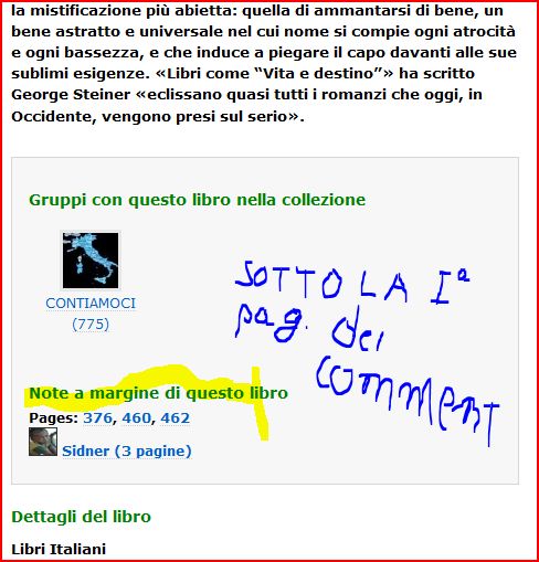 Peccato che pochi la usino. Peccato che le “Note a margine” siano nascoste dopo la prima pagina dei commenti, dopo la “descrizione del libro”, e dopo la lista dei gruppi che hanno il libro “nella collezione”.